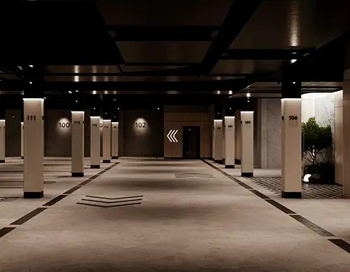 Отдельно стоящий 9-этажный паркинг и подземная парковка.