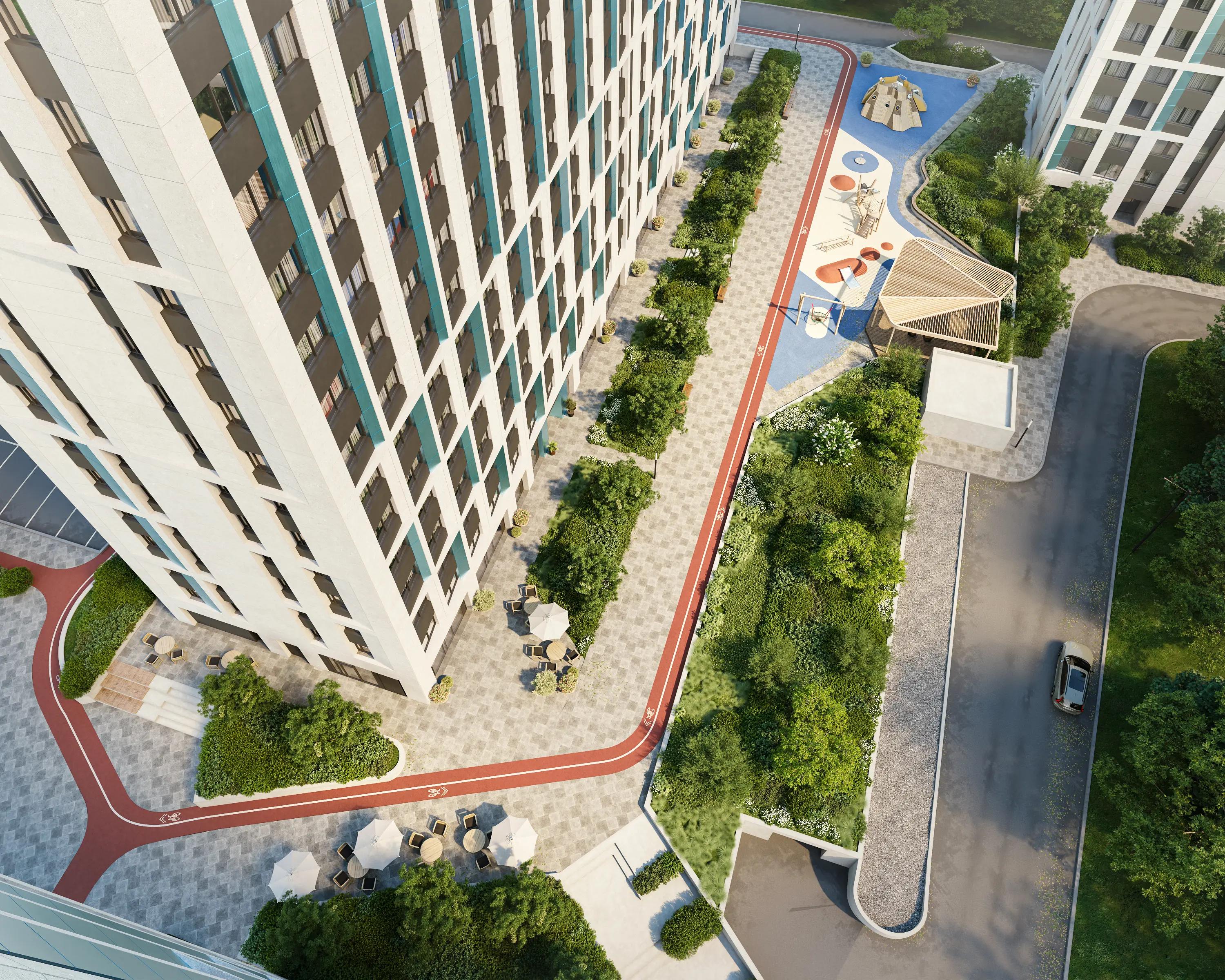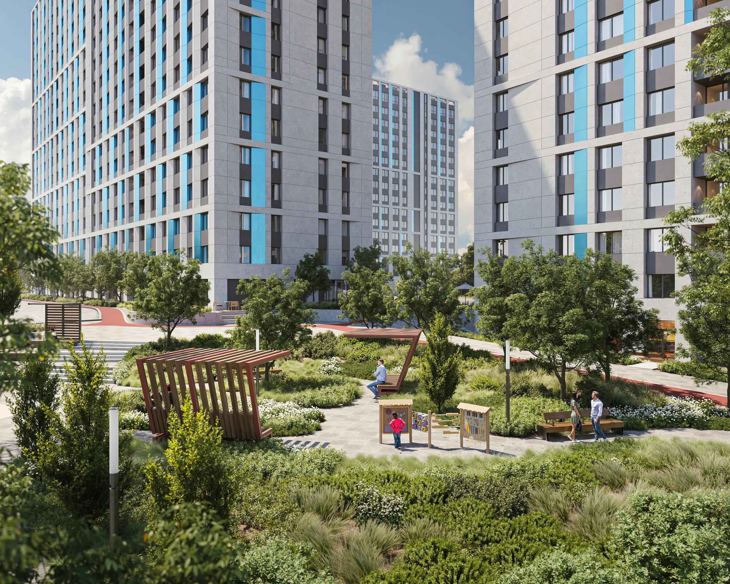 Ваше собственное зеленое пространство с тщательно продуманным ландшафтным дизайном. Прогулки здесь становятся ежедневным ритуалом. Вокруг — ухоженные кустарники, цветущие многолетники и хвойные растения, которые создают уют и гармонию в любое время года